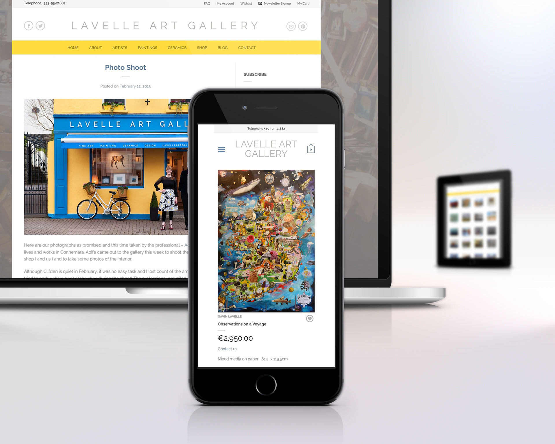 It was important in the design of this site to communicate the three main “sections” of the Lavelle Art Gallery: Visual Arts, Ceramics and The Design Range. The website build was part of a larger rebranding project, including a full redesign of the shopfront and the companies logo and so the new look for the gallery was reflected and reinforced throughout the site.