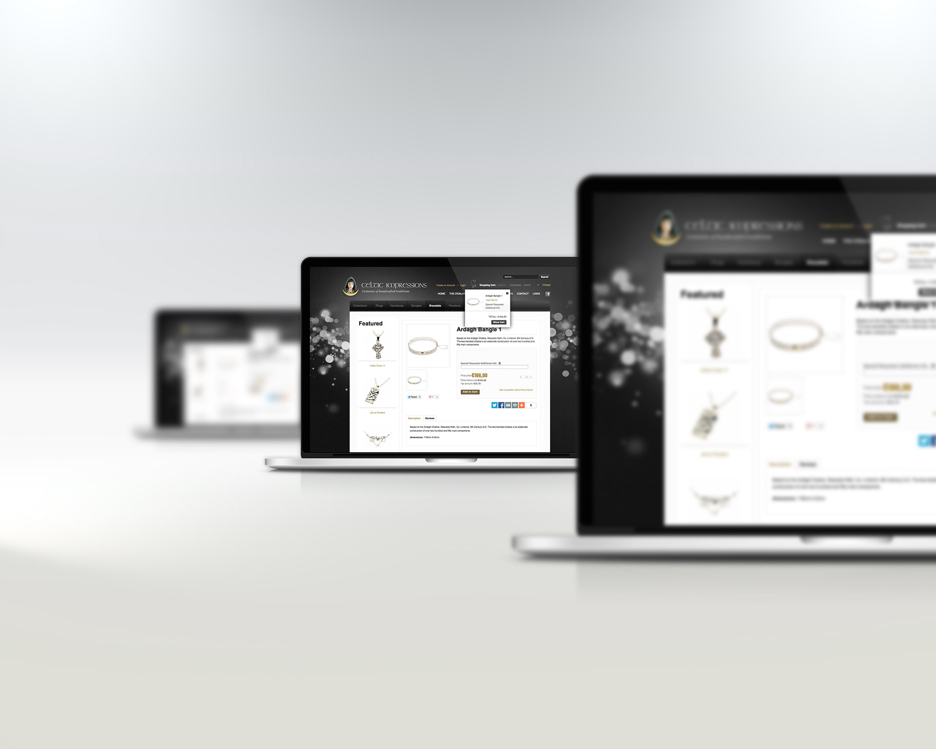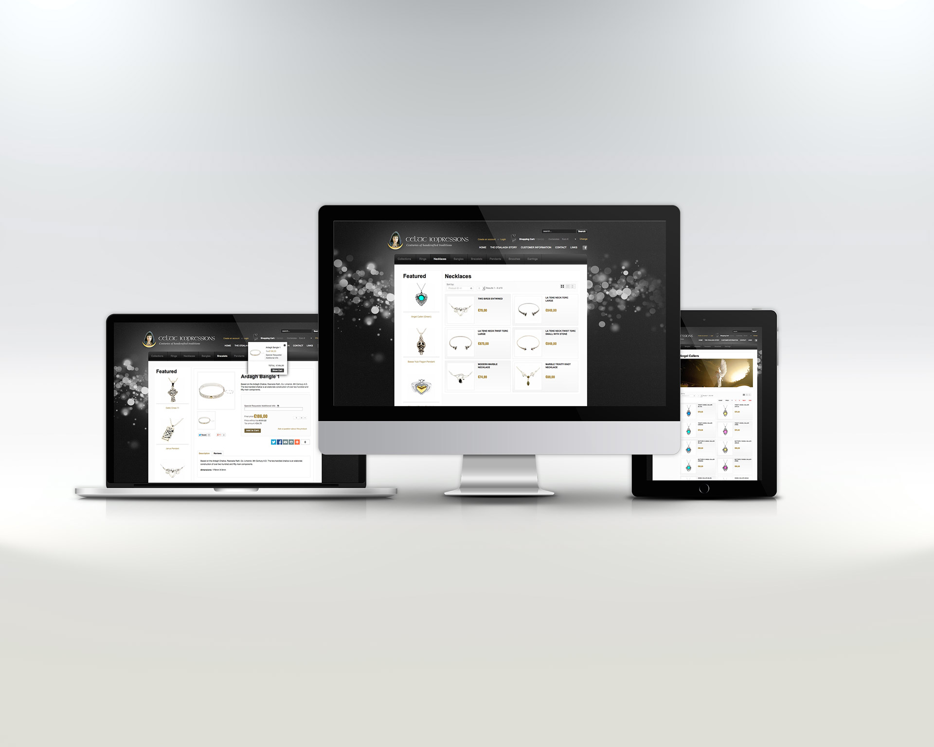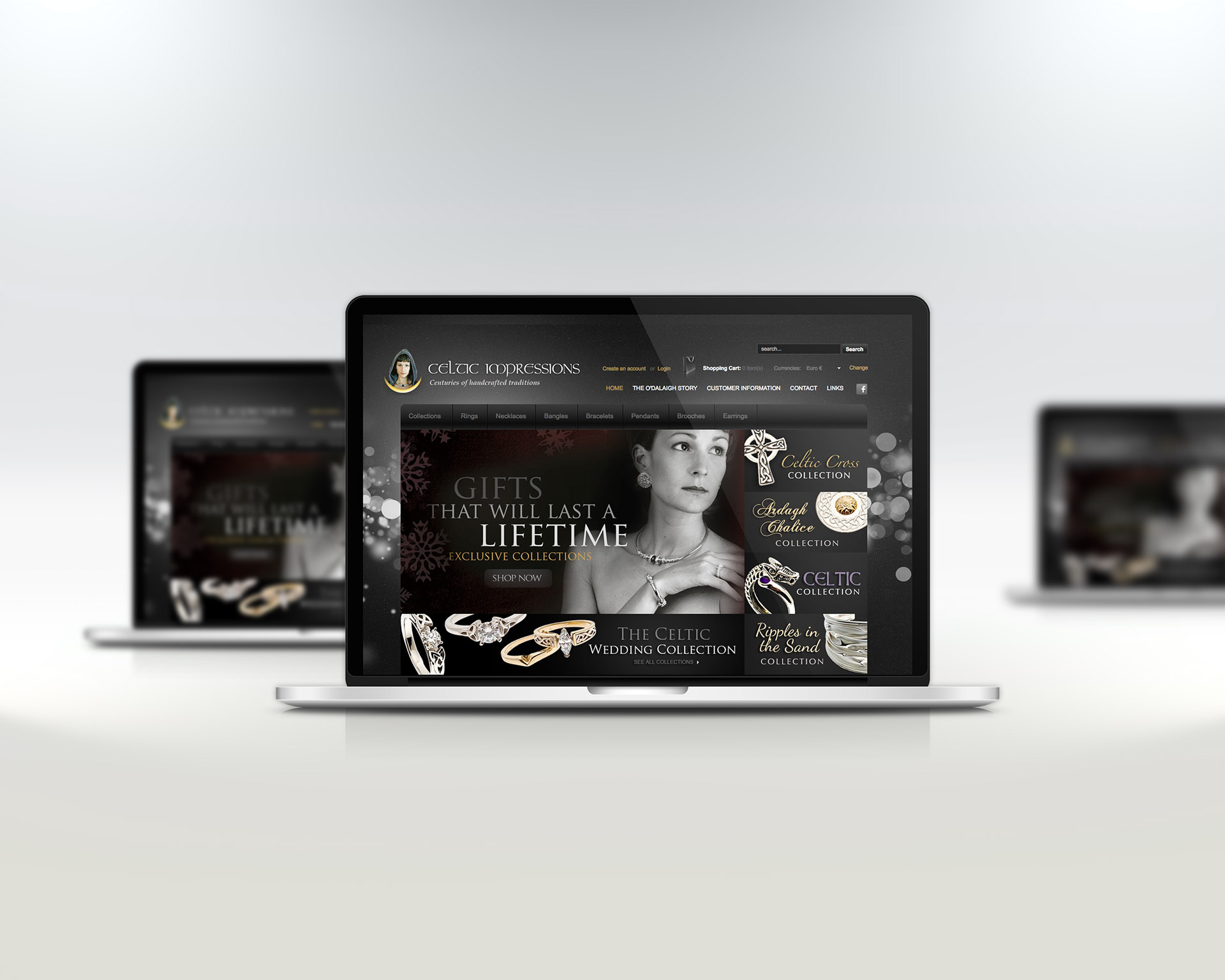 Development of an integrated e-commerce solution for O’Dalaigh Jewellers’ world renowned Celtic Impressions jewellery range, inspired by magnificent museum artifacts, Irish legend, and some of the oldest known rock carvings.