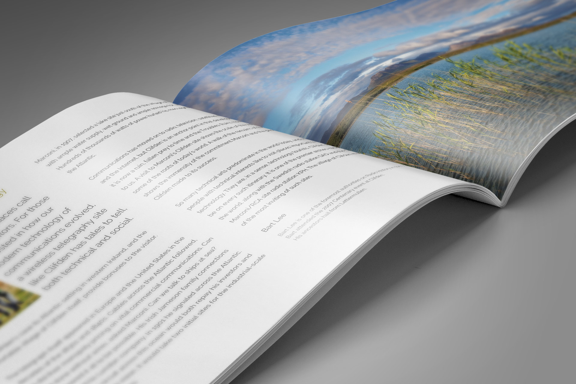 We were approached by the committee involved in putting a funding bid together for an interpretive space on the location of the ruined Marconi Station in Galway, Western Ireland. This was a crucial bid document which needed to make the case for funding for such a historically important landmark site in the history of communication technology. We worked very closely with committee members to collate and advise on the document’s content and creative direction. The end result was a beautifully crafted document and which was then presented to an executive board that oversaw funding for projects of this type. The committee secured over €1 millon euro in funding with the help of the document, securing the future of the site and making it into a first class detination for visitors and people interested in learning about the orgin of modern day communications.