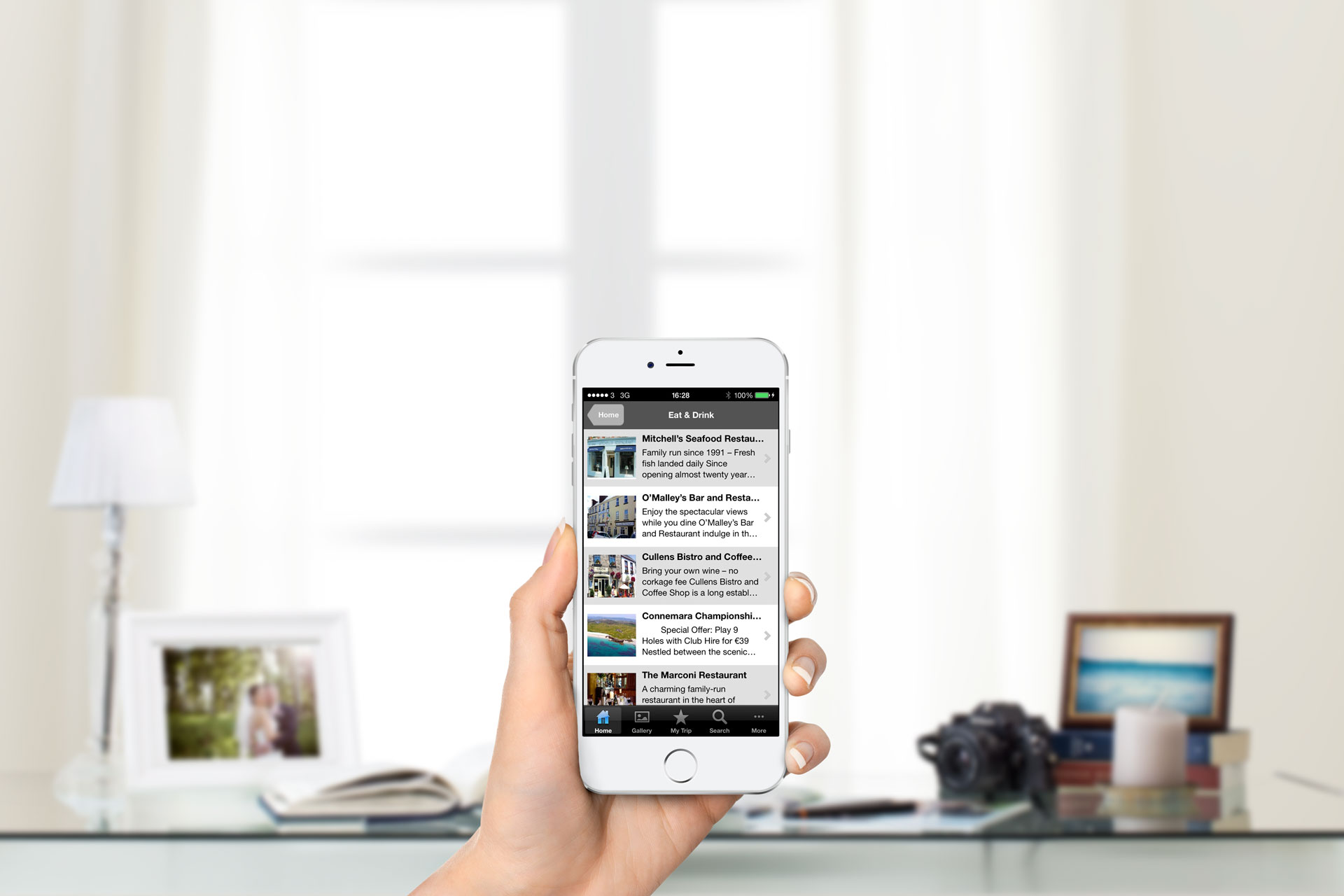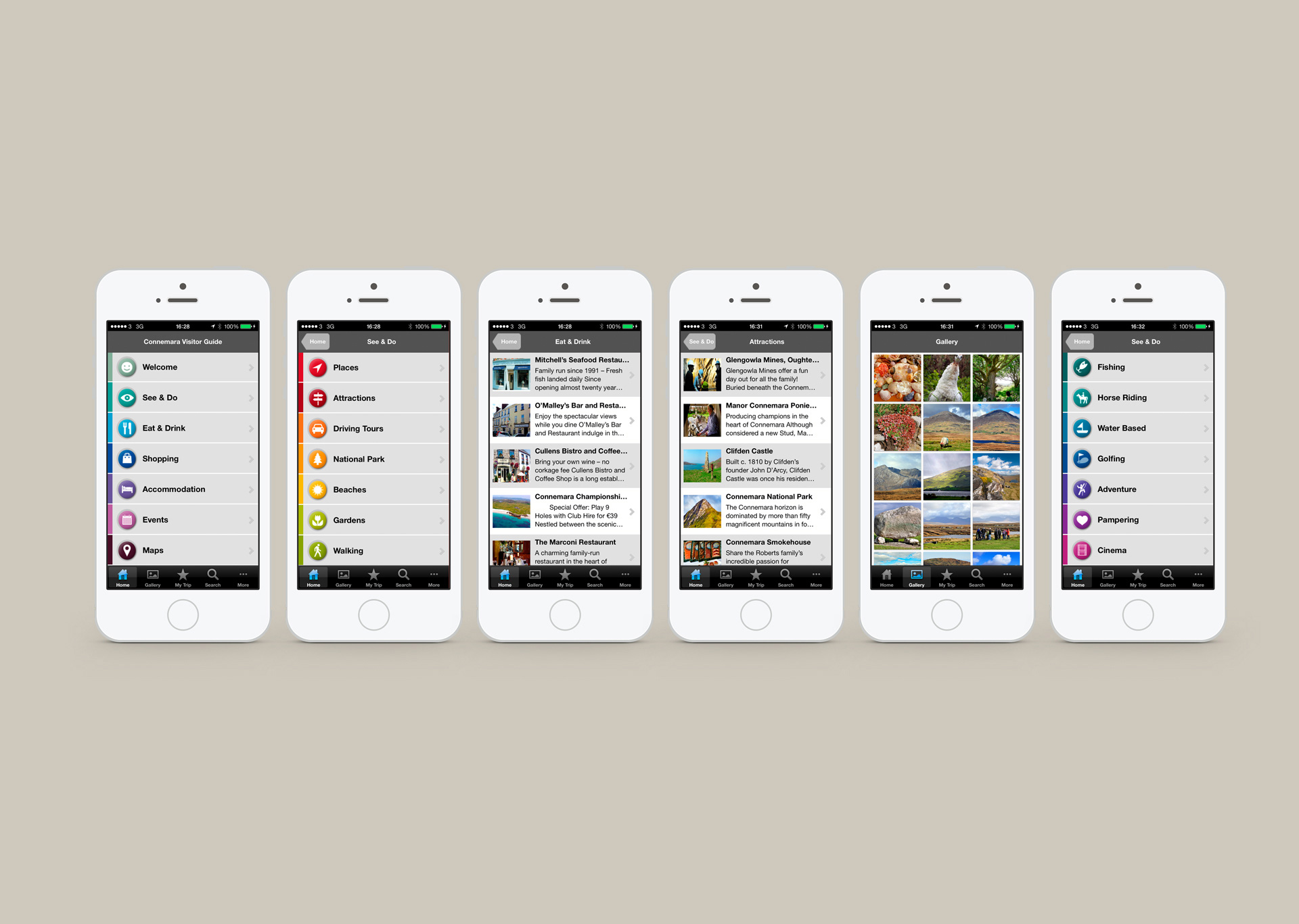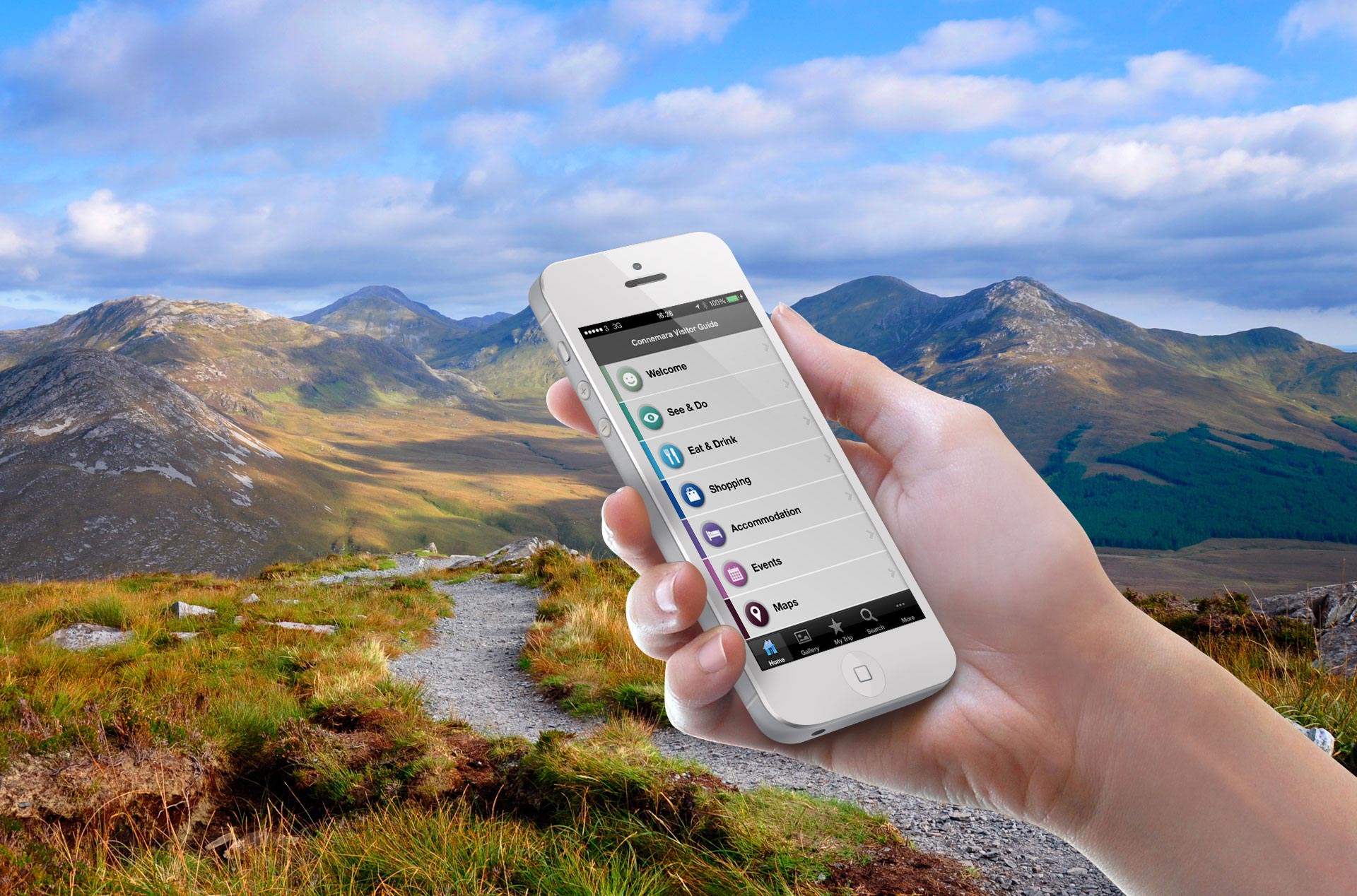 The app is structured as a guide on what to do and what to see in Connemara. It features eye-catching slideshows, a range of up-to-date suggestions on events, live music, activities and attractions, comprehensive articles on drives and day tours, listings of good restaurants, bars and cafés, great local shops, best places to stay as well as interactive maps and other useful information to help the visitor find his way around.