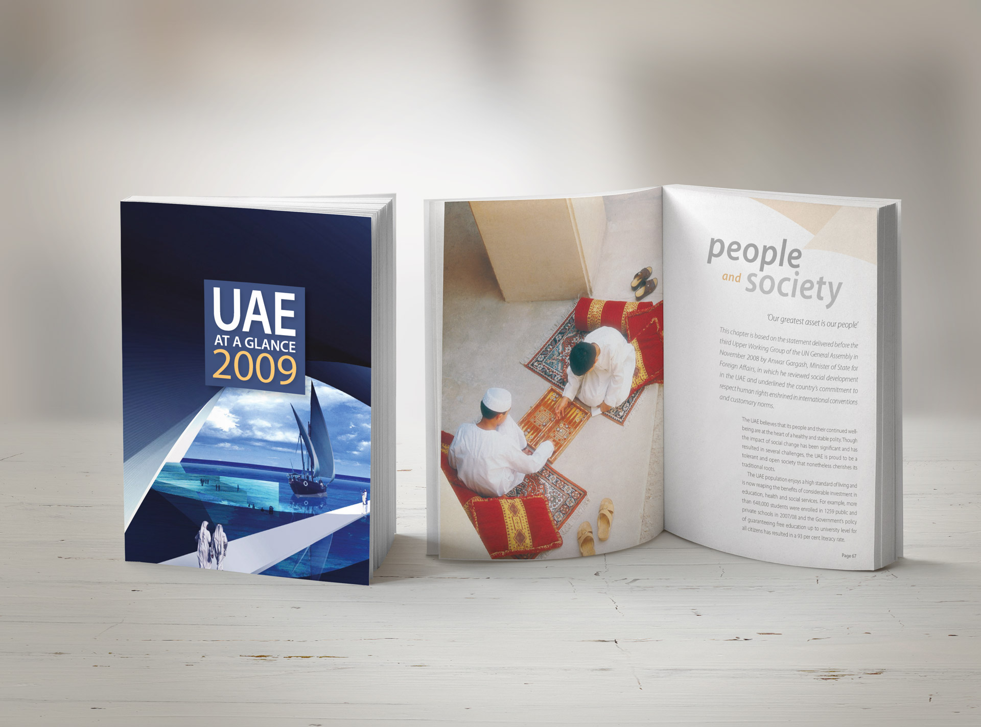 Trident Media approached us to design their UAE at a Glance title. UAE at a Glance is a useful, concise reference book on the United Arab Emirates and is intended as a companion guide to their main UAE Yearbook. The finished design can be viewed online here.